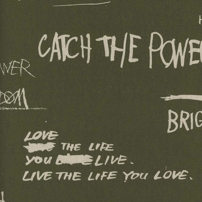 Cosmo Canvas fabric with a chalk board graffiti print in hunter green.