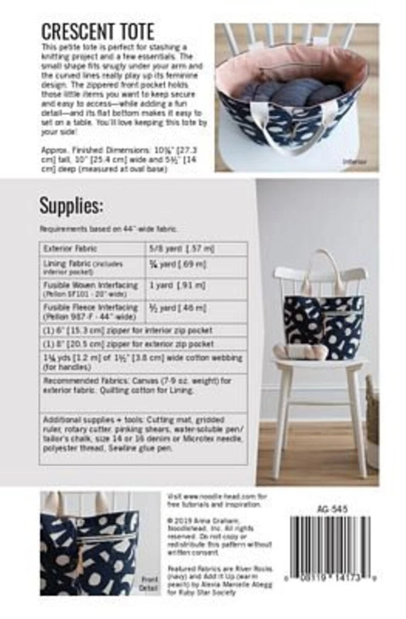 Recommended Fabrics: Canvas (7-9 oz. weight) for exterior fabric. Quilting cotton for Lining.
