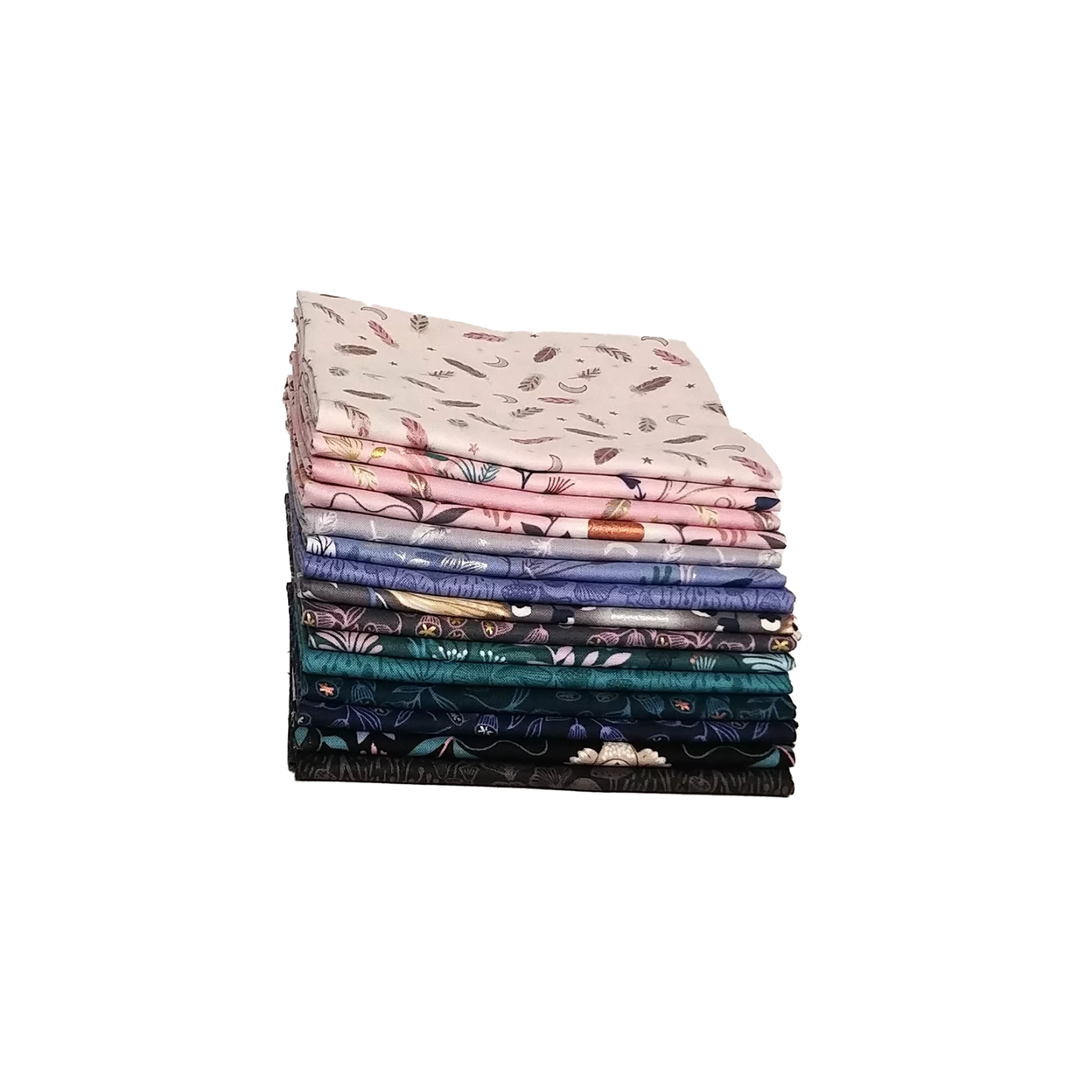 This bundle includes 15 fabrics, each measuring approximately 18″ x 22″.