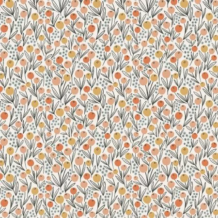Camping Flowers fabric in sunrise coral from the Get Out and Explore collection by Mint Tulips for RJR Fabrics.