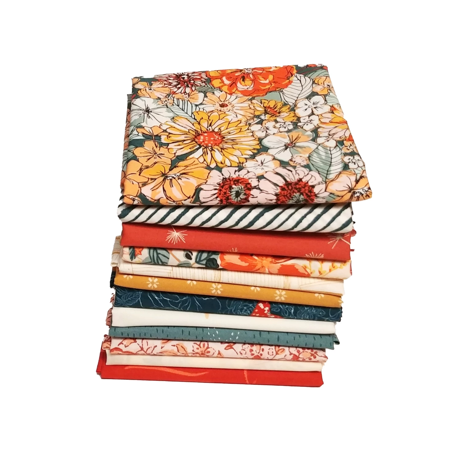 This fat quarter bundle includes 12 pieces of fabric, each measuring approximately 20″ x 22″.