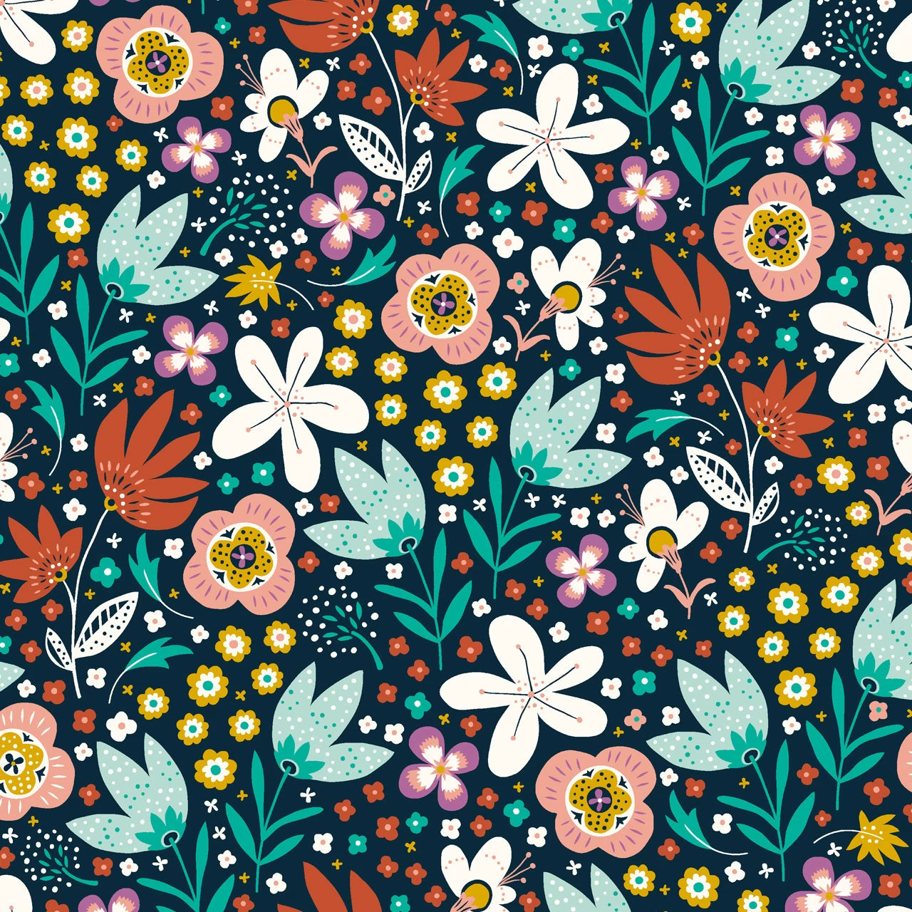 MAG2401 Meadow Floral fabric in navy from the Magical Meadow collection by Anna Deegan for Dashwood Studio.