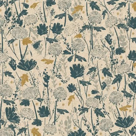 Wander Field unbleached canvas fabric in marine from the Summer Folk collection by Lissie Teehee for Cotton + Steel.