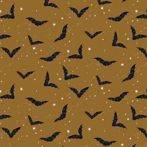 TWIL 2119 featuring bats on brown fabric from the Twilight collection by Bethan Janine for Dashwood Studio.