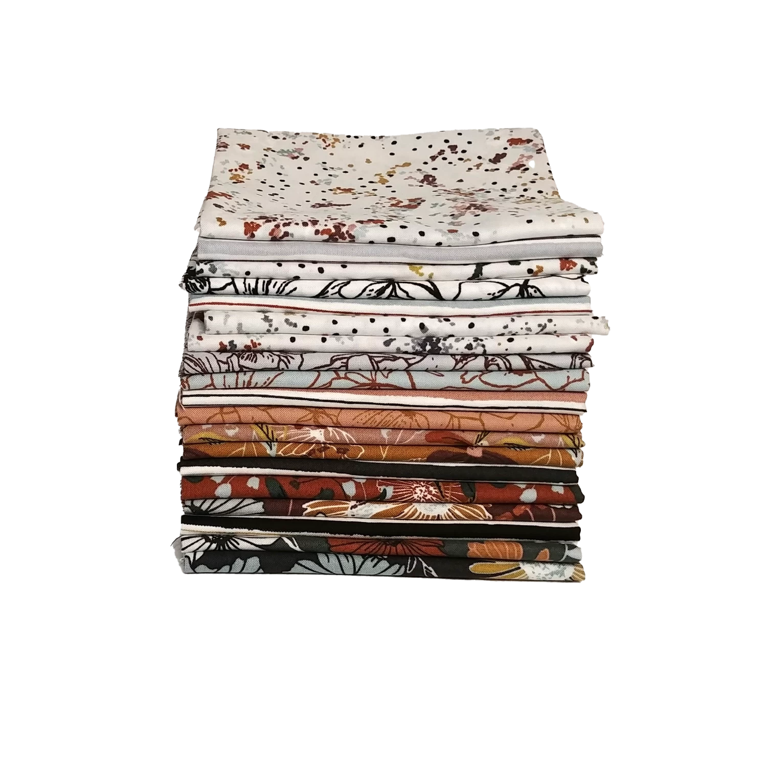 This bundle has 19 fabrics, and includes the 3 Wallflower prints from the Nightfall collection. Each fabric measures approximately 18″ x 22″.