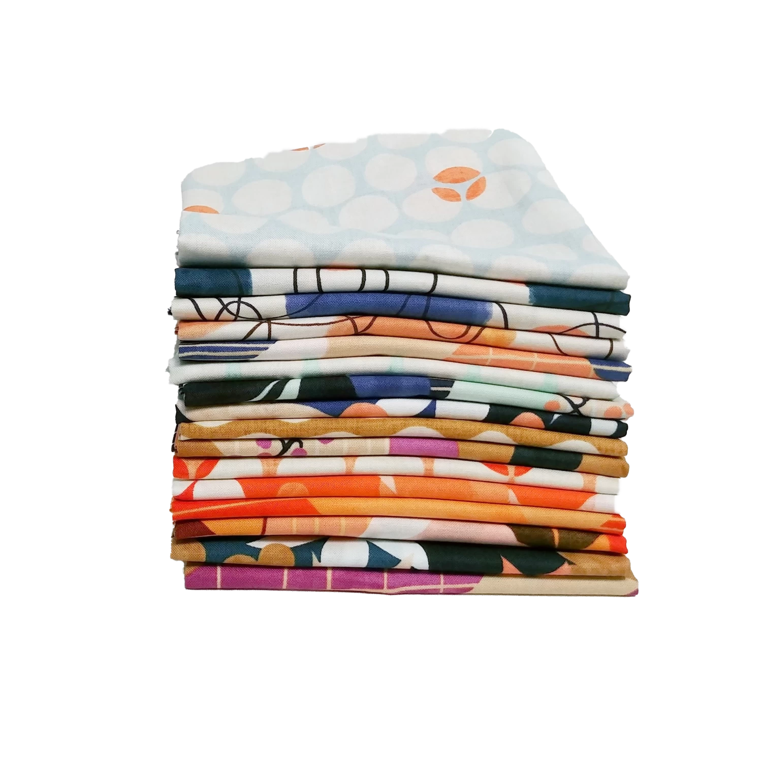This bundle includes 16 fabrics. Each of the fabrics measures approximately 18″ x 22″.