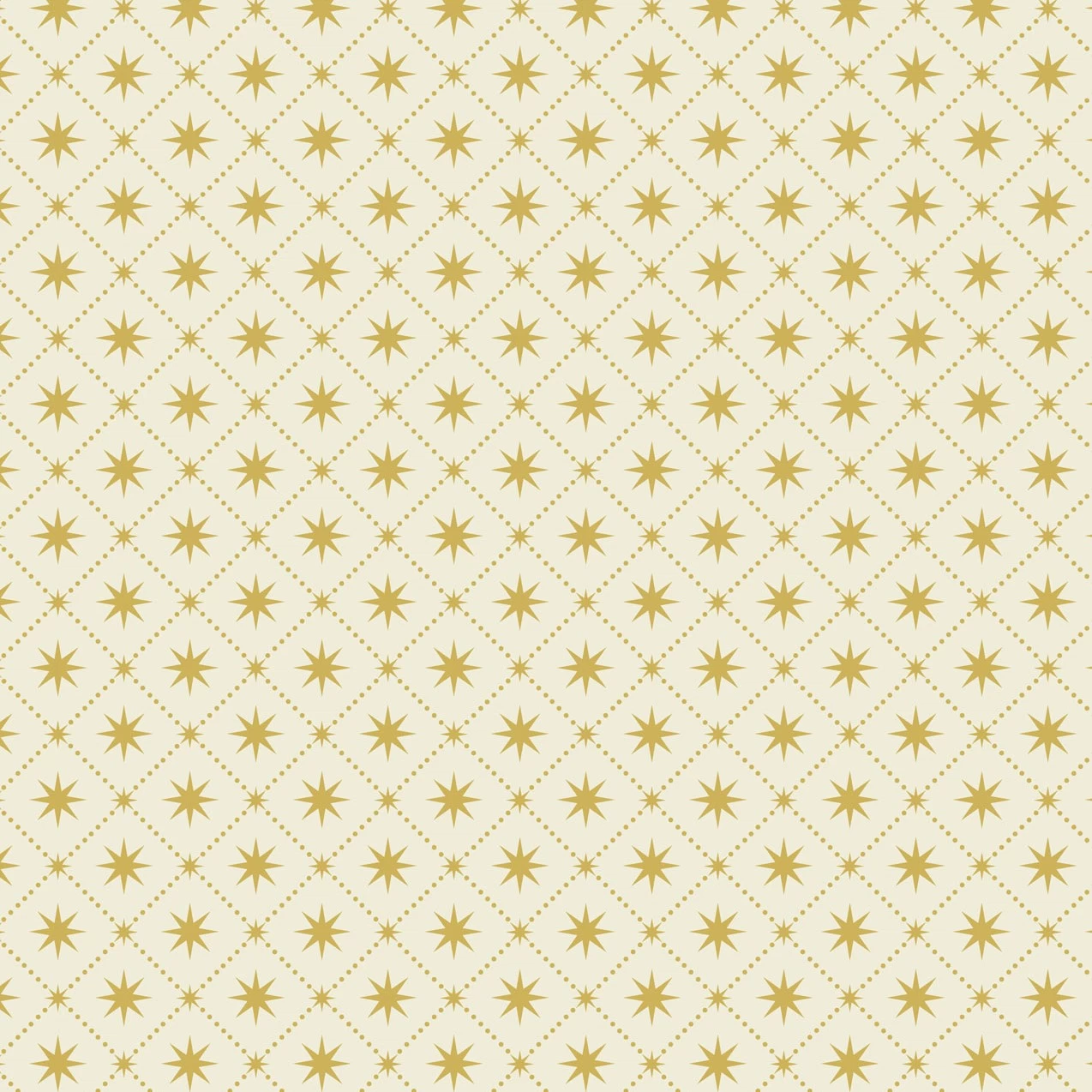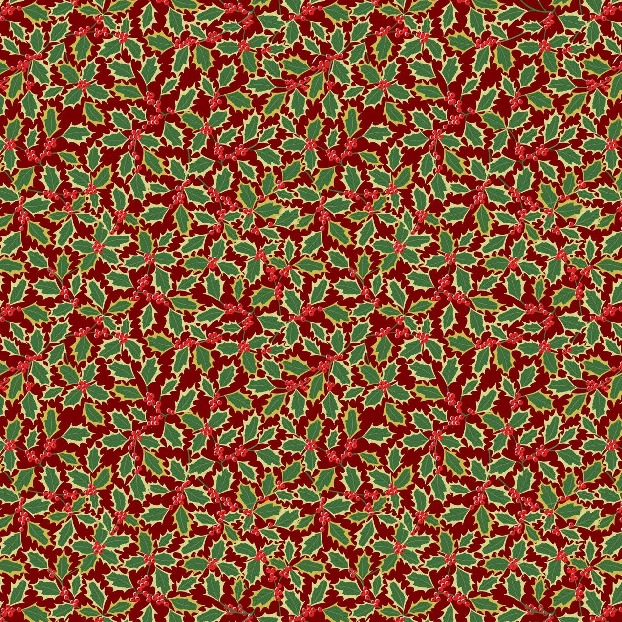 Christmas themed fabric collection featuring poinsettias, stars, and holly accented with metallic gold.